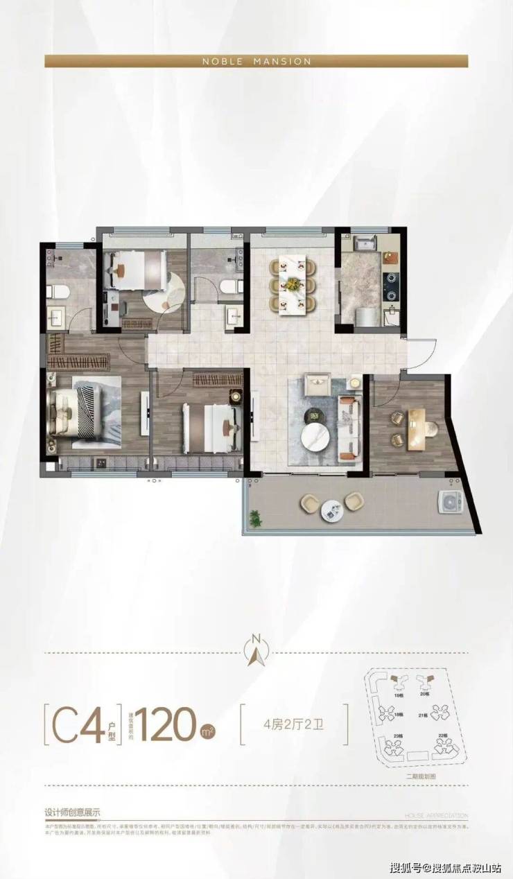 105-120㎡四房两卫:奢阔尺度,满足二胎家庭或改善需求,主卧套房设计尊享私密。
