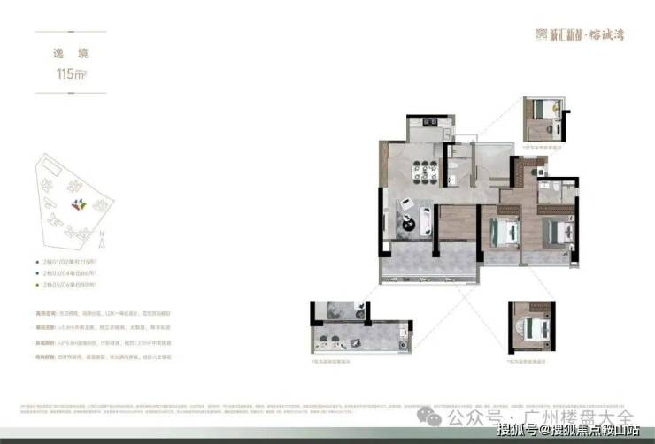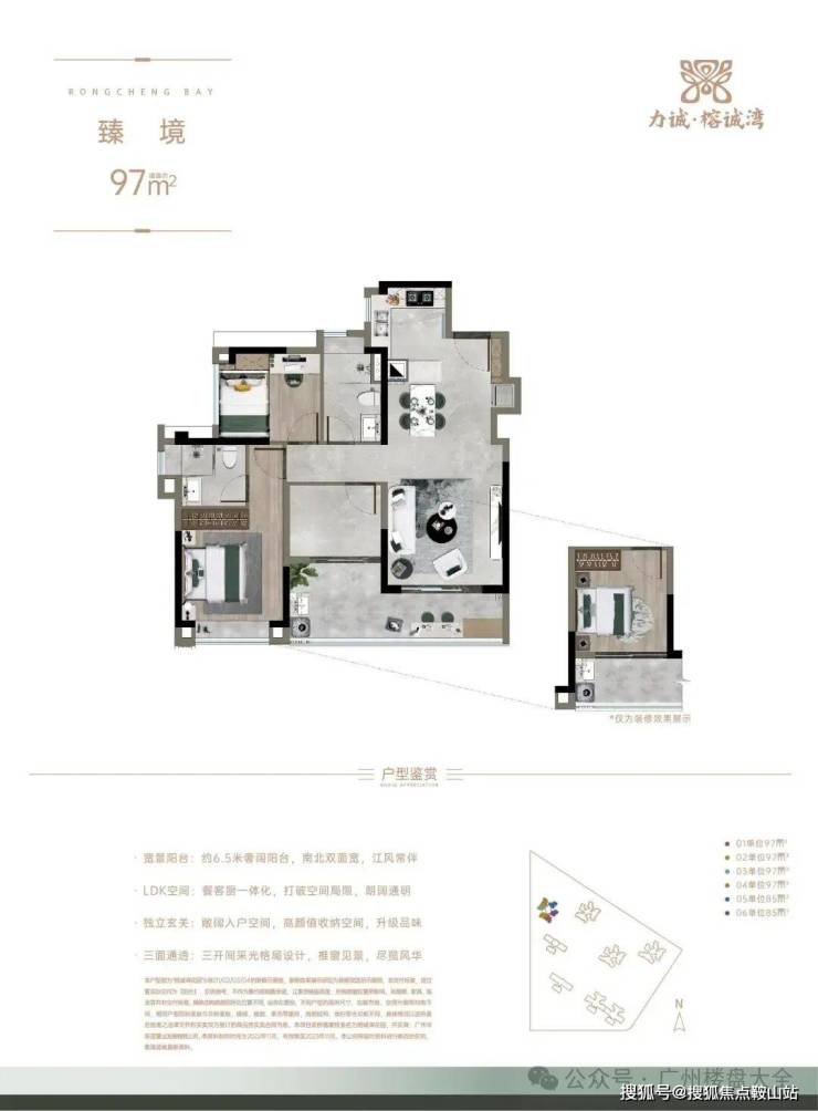 建面约97㎡,江园双景臻席,不仅能欣赏花地湾江面卓绝风光,还能俯瞰榕诚公园,以及GVL怡境国际匠心打造的“山林麓畔 隐翠森居”主题大师园林,LDK餐客厨一体设计,约6.5米宽境阳台。