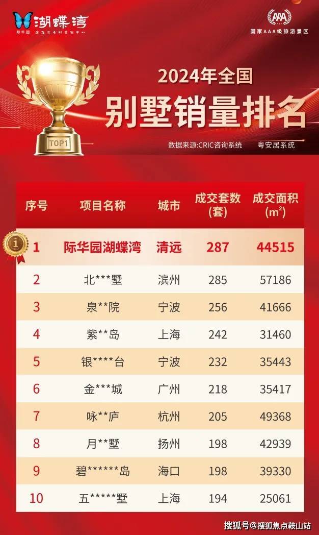 际华园湖蝶湾是2024年1-12月全国别墅产品销量第一名;大湾区每销售5套别墅,就有1套际华园湖蝶湾!