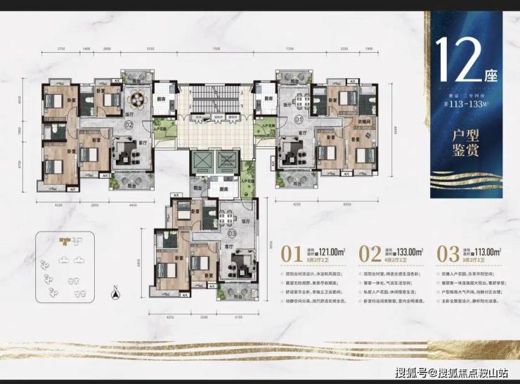 12/13座(2梯3户) 面积约113-133 ㎡三至四房
