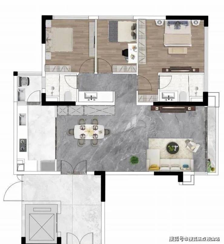尤为值得一提的是,该户型在私密性与仪式感上同样下足了功夫。内外双玄关的设计,既保证了居住空间的私密性,又增强了归家的仪式感,让每一次进出都成为一种享受。而专为女性设计的“翻牌子”区域,更是巧妙地融入了情感价值,让居住者在细节中感受到生活的温馨与精致。