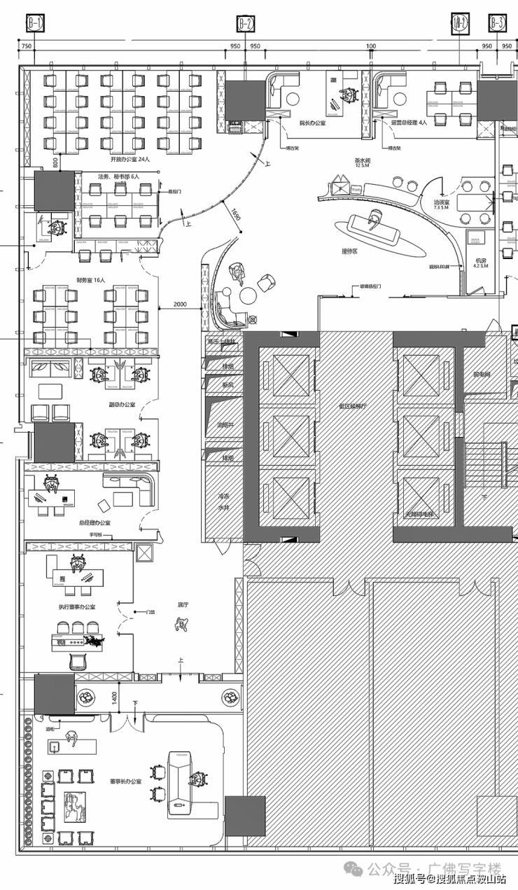 单元格局:2会议室(16-30人)、5经理室、1大老板房、1洽谈室、茶水区(直饮水系统)、舒适休闲区、1机房1储物间、200个卡位