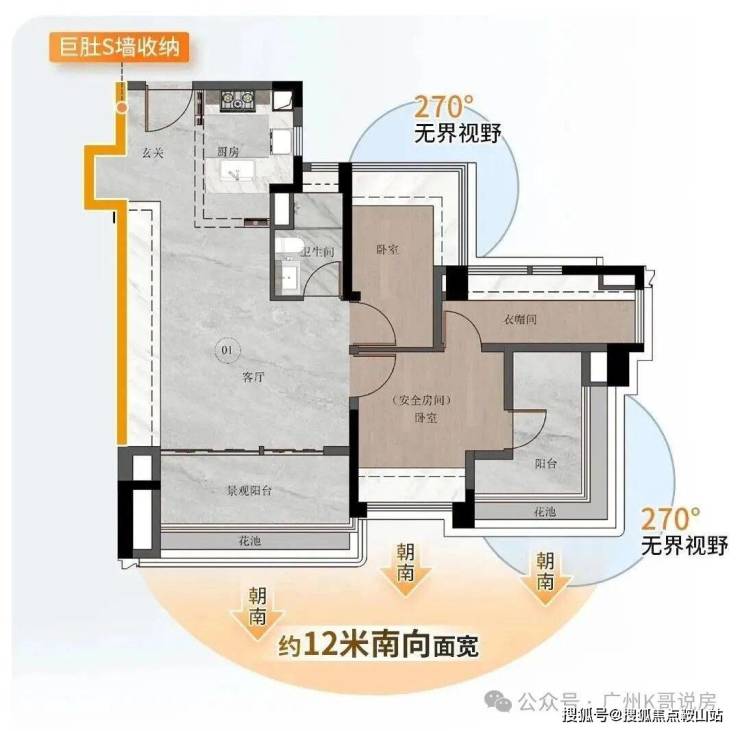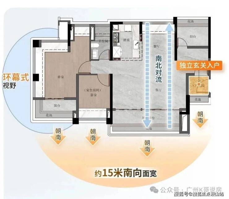 其二,更短进深,且全户型无遮挡,通风、视野效果拉满!