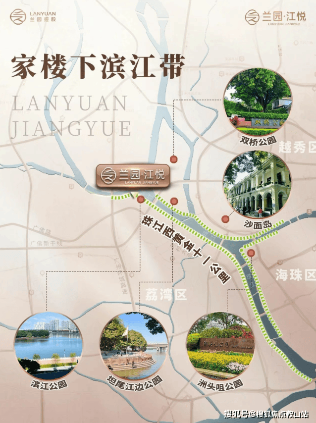 🌳 滨江绿带:家门口的自然人文剧场双桥公园的绿意、沙面岛的历史韵味,滨江公园的悠然、坦尾江边公园的闲适,洲头咀公园的诗意,下楼即享,把自然与人文,晕染成生活底色。广州向新,荔湾迭代,兰园・江悦 于白鹅潭芯,收藏烟火与进阶。