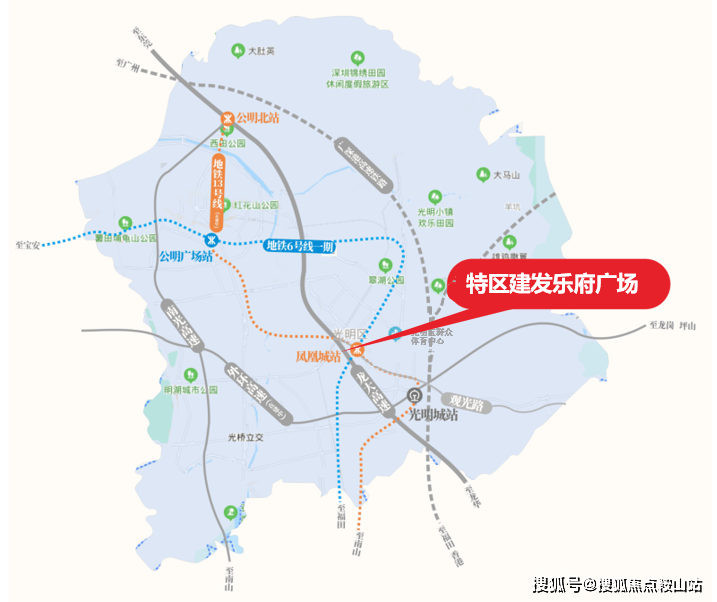 项目无缝接驳凤凰城地铁站,6号线已于2020年8月份开通,13号线(建设中)连接深圳科创基地,毗邻龙大高速光明出口,光明城高铁站,多维路网畅达全城。