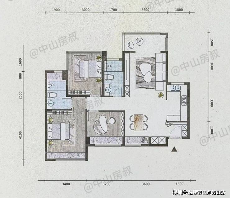 约91㎡户型,可以说是约80㎡户型的升级版。同样是3房设计,但却是四开间朝南,主卧超20㎡的空间,还带有独立卫浴。