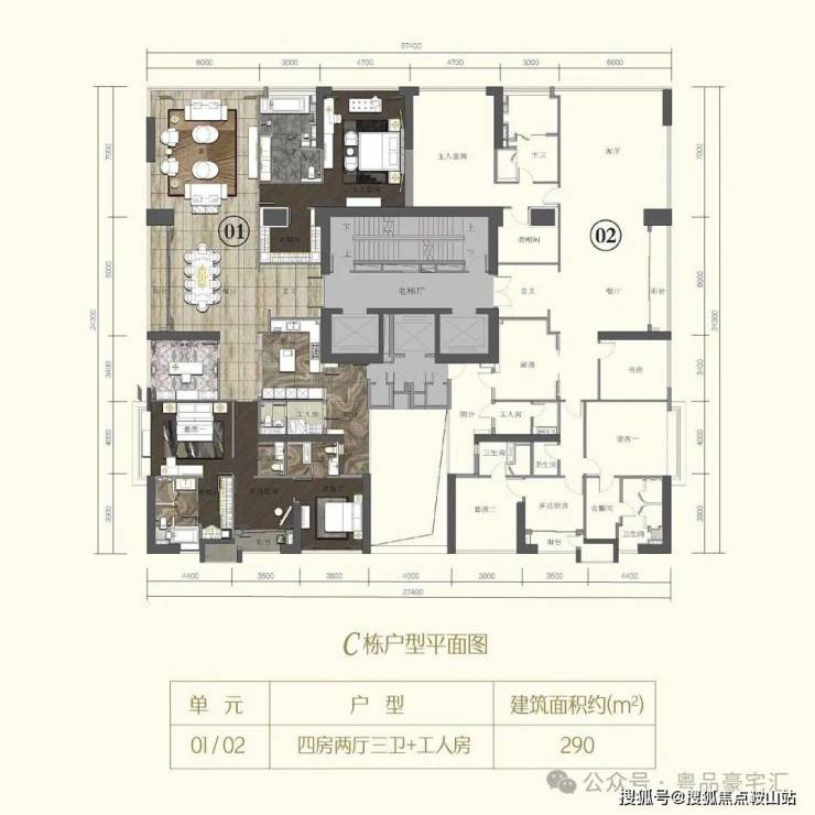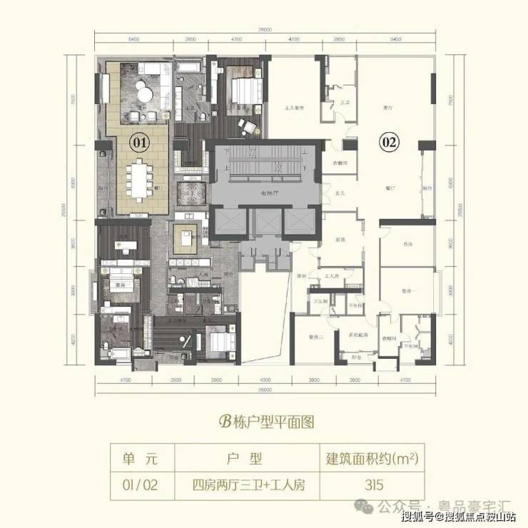 海珠半岛三期住宅,分为B、C两栋建筑,两栋错落分布,产品面积仅有2个户型:290、315m²。三梯两户设计,室内层高3.4米,起步门槛高,产品圈层纯粹,入户大堂9米挑高,住宅为4-43层。
