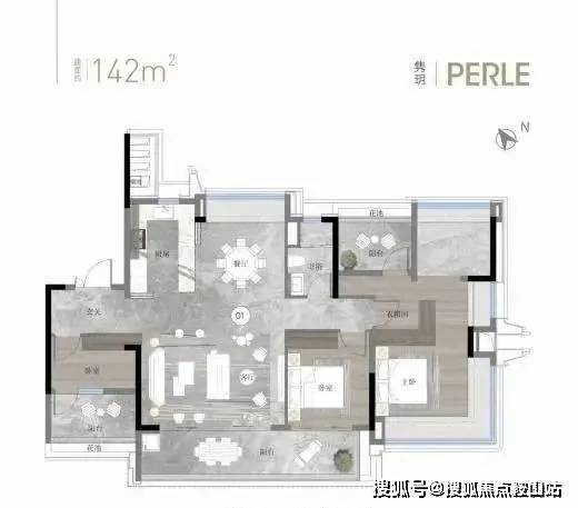 建面约142平方米户型:货量最多,独梯独户板式设计,三面采光,餐客厅和主卧南北对流。