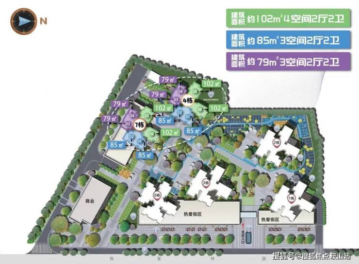 户型:79㎡、86㎡、102㎡三房两卫-四房两卫