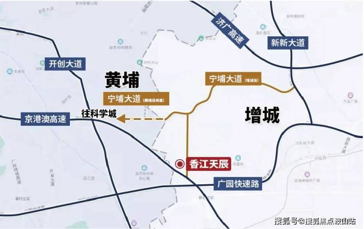 交通方面,自驾比较方便,可以通过广深高速、广园快速、广深大道,快速通达黄埔、科学城、天河等中心区,特别对科学城白领来讲,出门不远就是已经通车的宁埔大道,双向六车道为你的畅通出行保驾护航