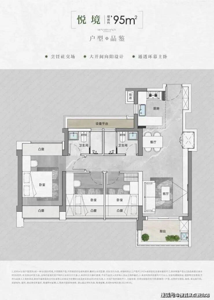 于是,一个95平4房1.5卫户型就诞生,,尽管3个次卧都要睡飘窗,但毕竟房产证只有95平,总价低,还是很牛的。这个户型只有1条腿,比较稀缺。
