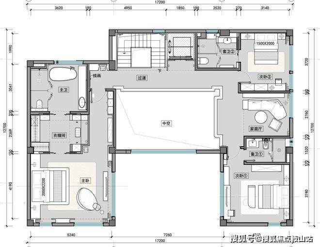 二层卧室布局错落有致,挑空区丰富空间层次;