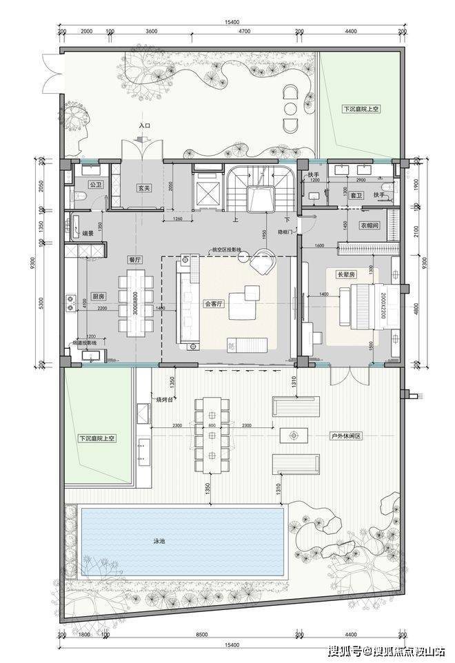 负一层下沉庭院周边设工人房、家政间,储物无忧;