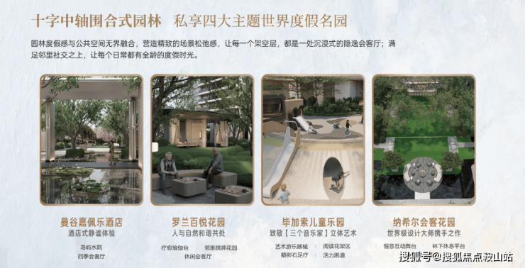 ◎ 约5000m²十字中轴私享园林:美国比弗利山庄一号为设计蓝本延续城市度假风格,以十字轴线延展,构筑中庭景观泛会所、主题花园等四大主题美境,聚焦全龄成长陪伴,在艺术美境中礼遇美好生活