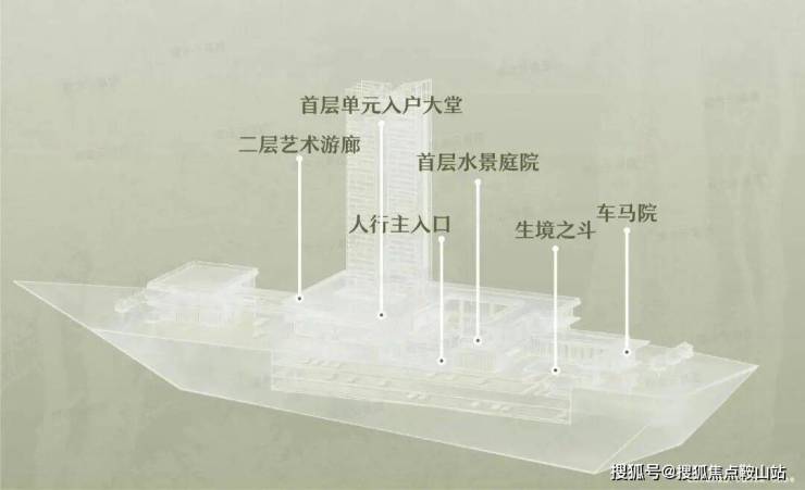 地上三层、地下三层的立体复合结构,实现了社交礼序、悦己空间与全龄社交的分层布局:首层静谧水景庭院搭配阔绰车马院与酒店式落客区,强化归家仪式感;二层艺术连廊衔接健身空间与城市资源,打造专属悦己场域;三层天际花园融汇浮岛、配备儿童、老人活动区域与萌宠乐园,满足全龄社交需求;地下层「生境之斗」设计,打破地下空间的封闭感,将阳光与绿植引入至地下三层的车库,让驾车归家成为一段穿越阳光、绿意与自然的惬意之旅。从空间规划到细节营造,无不体现对业主生活习惯的精准洞察。
