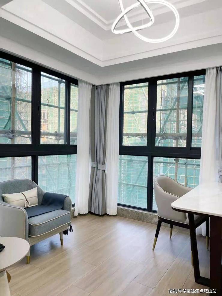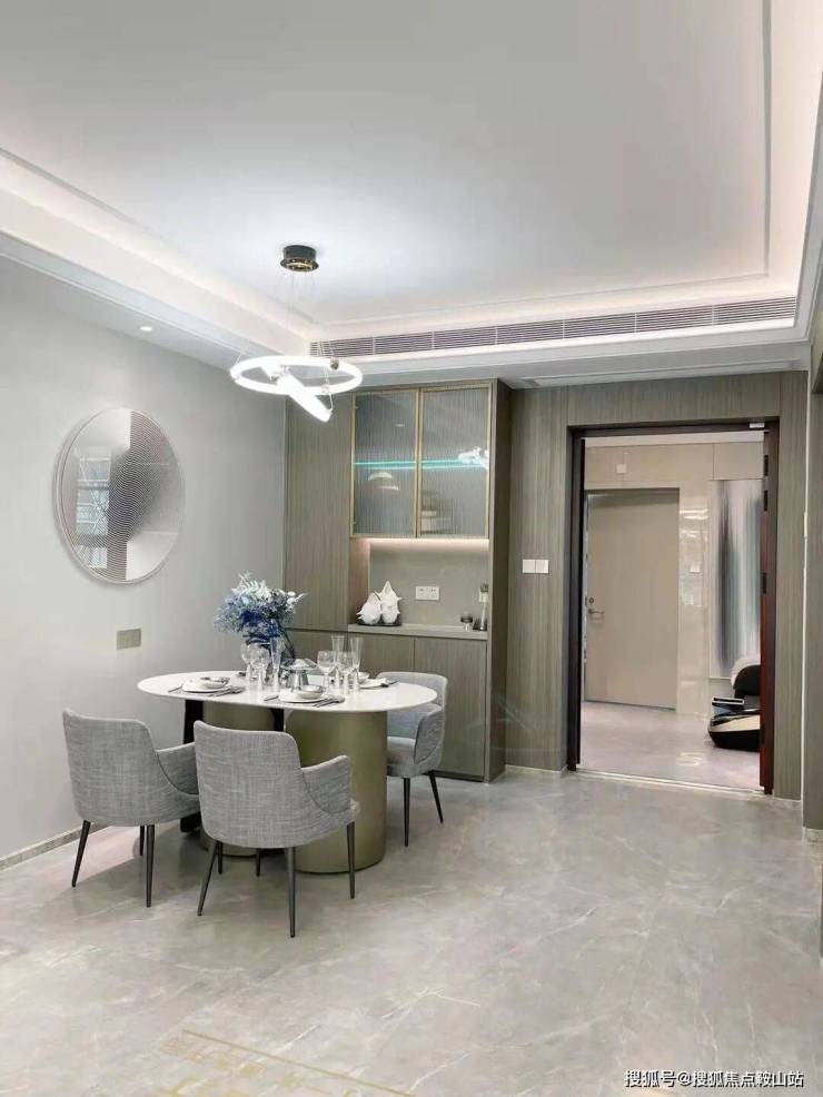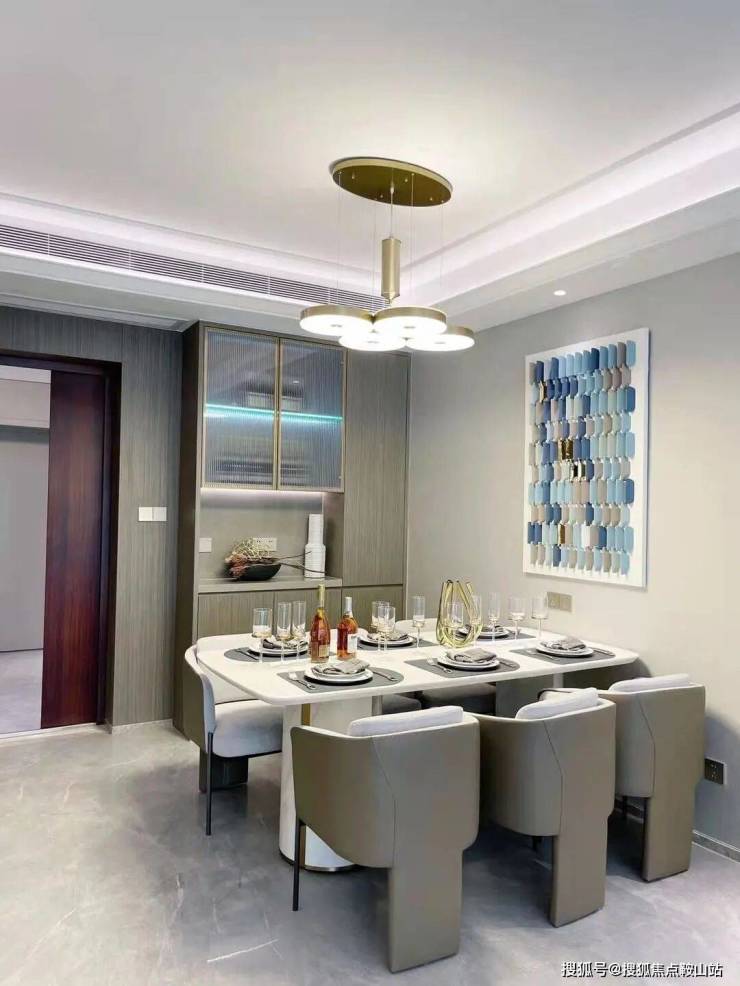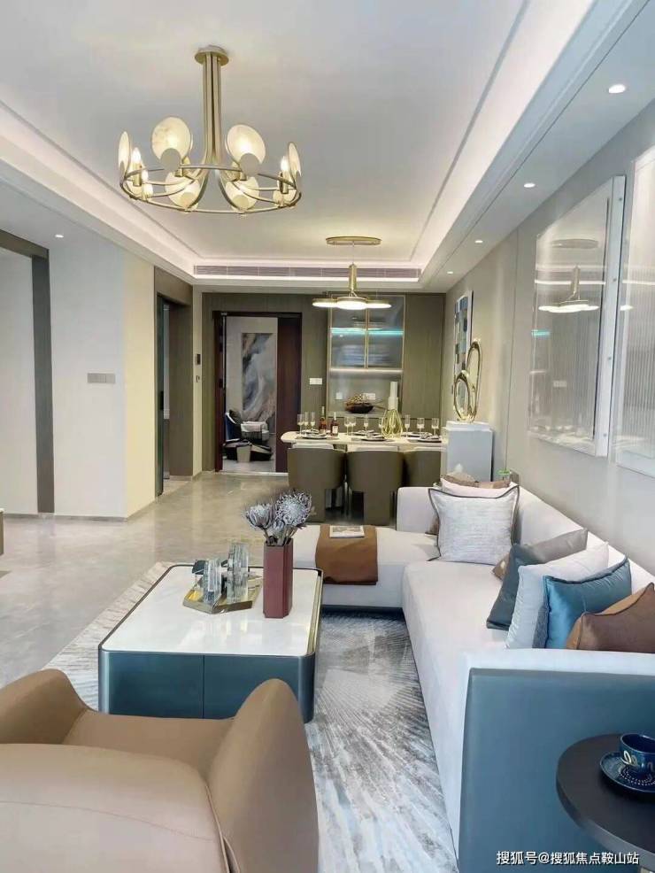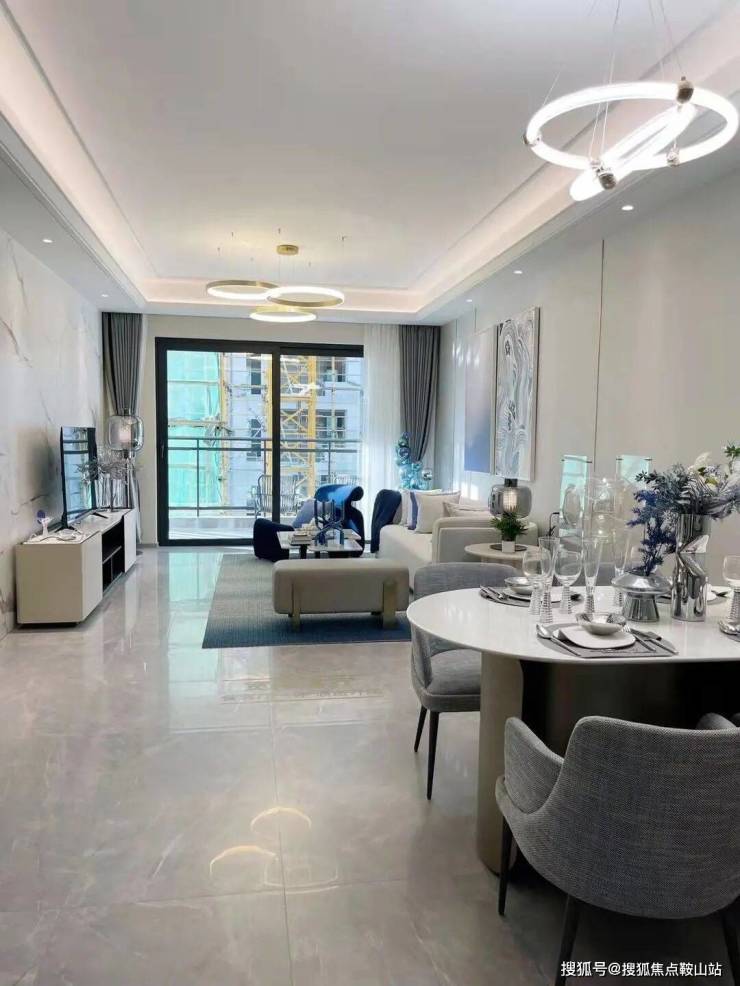 约9米进深的敞开式餐客厅一体化设计,通透空间让山语海风穿堂入户;
