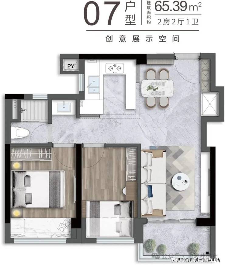 65m²的2房2厅1卫,折后总价395-430万,单价6.07-6.61万/m²。