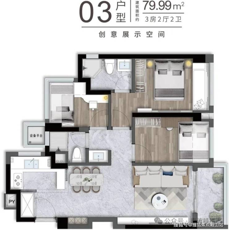 81m²的3房2厅2卫,折后总价511-545万,单价6.3-6.72万/m²。