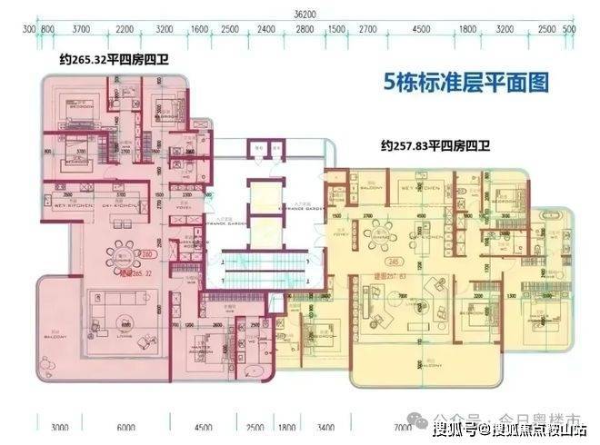 观潮府规划建设11栋住宅塔楼及商业裙房,共629套房源,面积从143㎡到500㎡不等。项目采用新规设计,南向面宽达14-20米,客厅与多间卧室衔接观景阳台。270°转角飘窗、7.8-9.7米宽景阳台将前海湾、欢乐港湾摩天轮尽收眼底。值得一提的是,项目得房率接近百分之一百,主卧多采用套房设计,部分户型设双套房,专梯入户设计更提升了居住私密性。这种"小而精"的产品策略在当前市场环境下显得尤为明智,既满足了高端客群的品质需求,又控制了单套总价门槛。