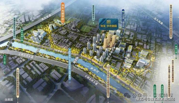 特发学府朗园,项目位于光明区公明李松萌炮台路与志康路交汇处,项目西北侧是深圳外国语光明学校,目前周边整体还是以工业园区及民房为主,13号地铁线“公明北站”距离约150米。处于李松蓢利益统筹项目地块中,项目将结合“产城融合、以人为本、低碳生态”的规划理念,重点关注产业升级发展、居住品质的提升、生产生活配套服务优化等方面,预计总投资额约100亿元,成为茅洲河畔百万平方米产城融合的超大型宜居宜业社区。