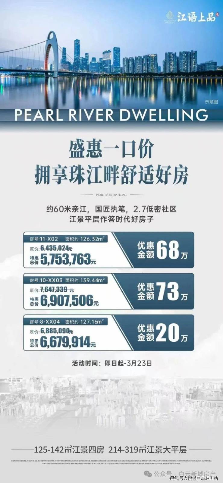 与江60米,户户朝南望江:项目距离珠江仅有60米的距离,是广州所有在售项目中最靠近珠江的。这个亲江距离,连珠江新城单价25万的凯旋新世界广粤尊府及单价30万的汇悦台、琶洲超15万的保利天悦都无法拥有。而且户户南向望江,更是稀缺。