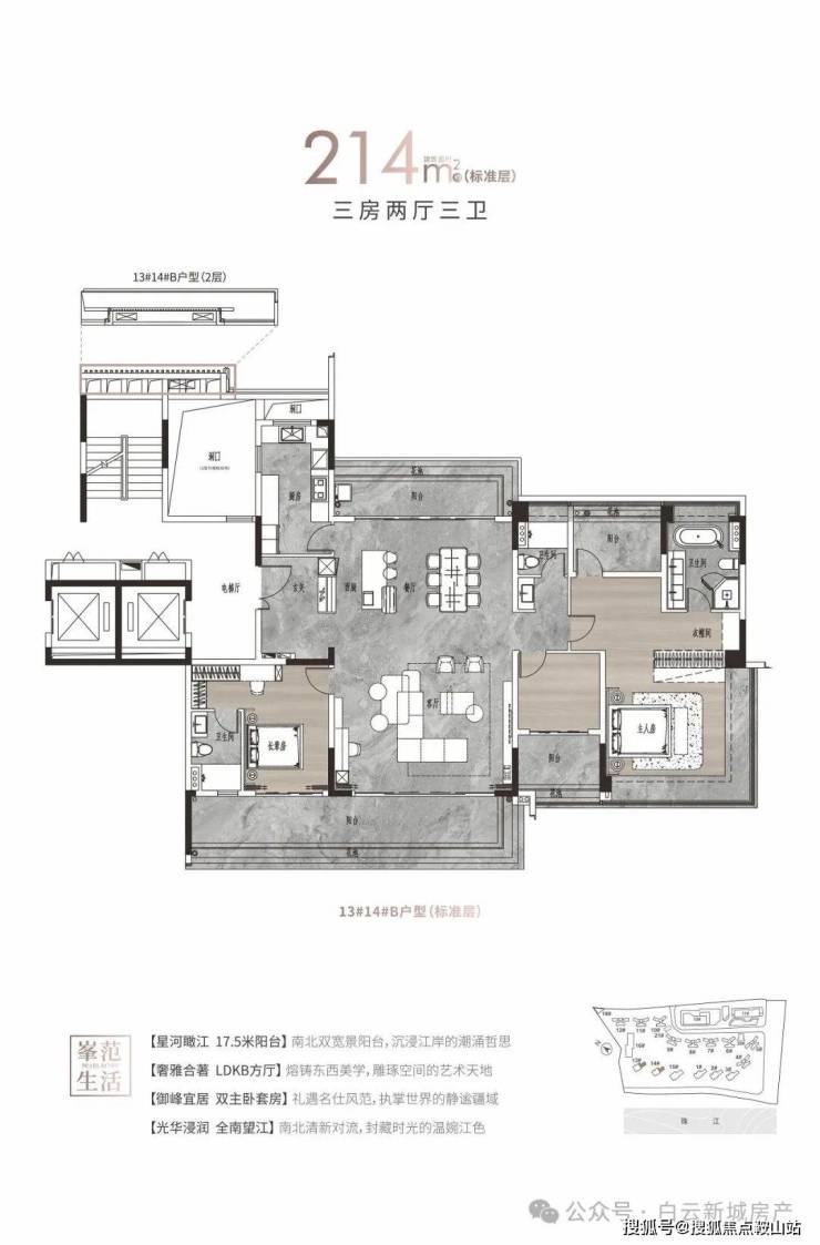 4. 214㎡ 三房三卫户型(小高层)
