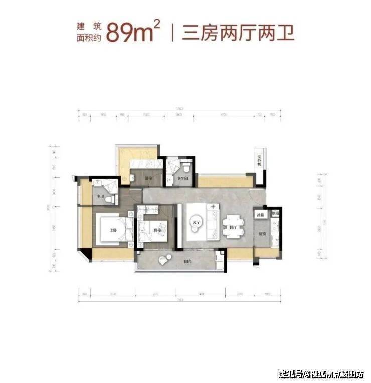 本次加推的是1栋,项目总高32层,2梯6户,建面约80、89(横厅、竖厅)/107竖厅户型4个产品,新规户型产品,适应家庭不同阶段的需求变化。