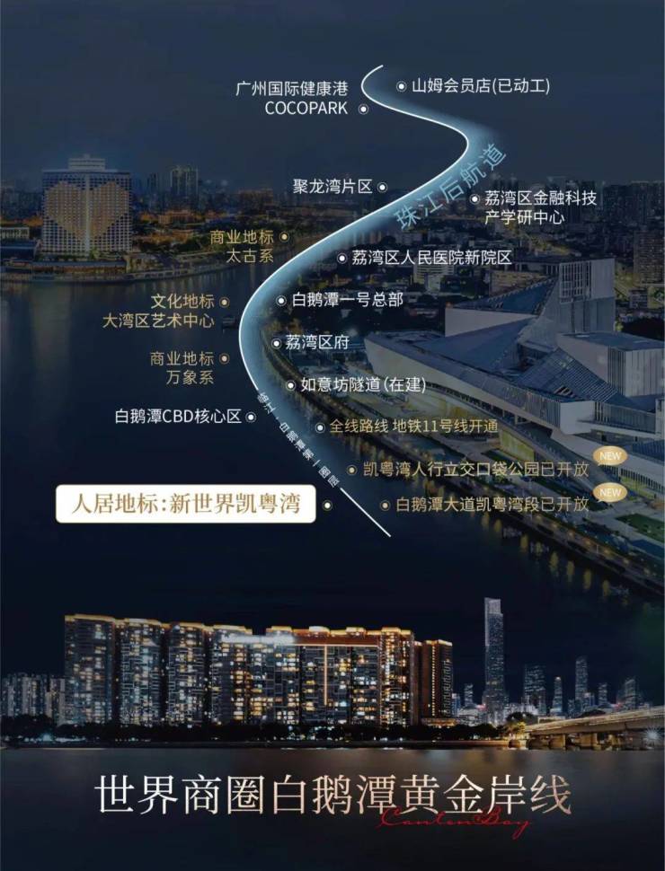 凯粤湾是新世界继二沙岛新世界别墅、珠江新城凯旋新世界后,在白鹅潭打造的全新一线临江大盘,这个地块也是广州最后一批的一线临江项目。