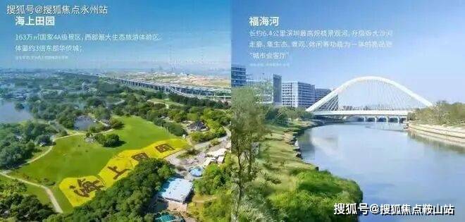 海上田园与福海河畔公园两大水岸生态绿境环绕项目。其中,海上田园是约 163 万㎡的国家 4A 级景区,不仅是西部知名生态旅游体验区,体量还相当于 3 个东部华侨城;福海河全长约 6.4 公里,是深圳西部高规格景观河,对标升级版大沙河走廊,打造了兼具生态、景观、休闲功能的高品质 “城市会客厅”。