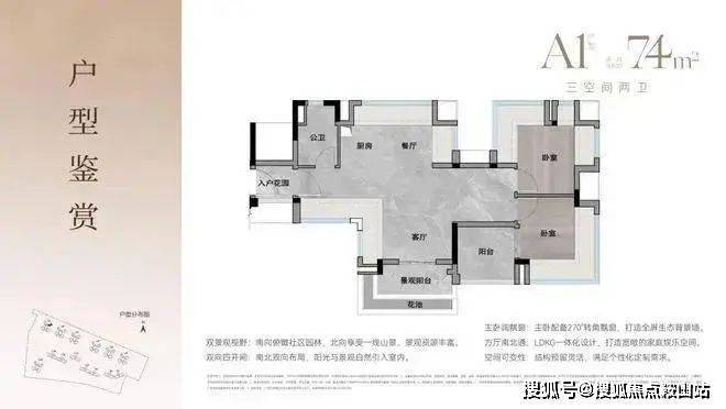 约74-94㎡三至四房,2梯4户设计,四面宽朝南,大方厅设计,小家也有大精彩。