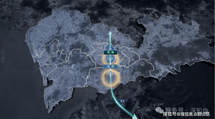位于广·深·港大中轴,南起香港,与河套深港创新合作区、福田中心区联动,产业、人流互动紧密便捷;距离各区均较近,福田北约3.4公里,交通便捷,通达性强。