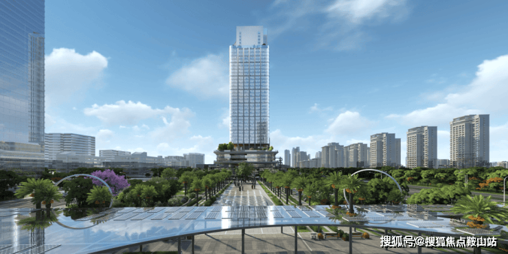 垂直绿化设计,营造花园式办公场域,生态景观始于约14816m²河套合作区中心公园,连接商业裙楼屋顶花园,优雅延伸至办公塔楼