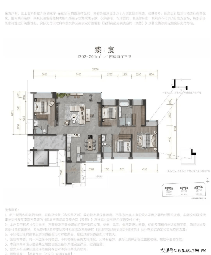 【产品户型】:建面约202-204㎡四房两厅三卫