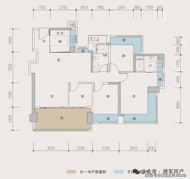 87㎡的3房2厅2卫,B户型,设计的是经典竖厅格局,进门入户玄关,客厅3.5米开间,LDKB一体化,动静分区,三开间朝南,S墙设计预留冰箱卡槽位,主卧+1个次卧270°飘窗,U型厨房,卫生间干湿分离,得房率约:77.4%(不含赠送),西南朝向。套内面积67.51㎡+赠送面积16.96㎡=实得84.47㎡,加上赠送得房率96.83%。