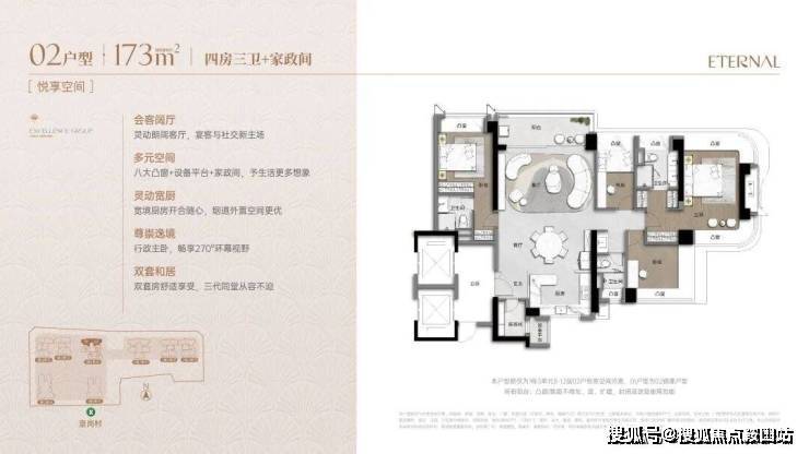 新规户型:超高使用率+灵动布局,满足改善型需求项目1栋五单元矗立福田中心,45层规划232户,92-173㎡ 的3-4房,新规下销售使用率超90%,空间利用高效,其中122-173是四房为主!