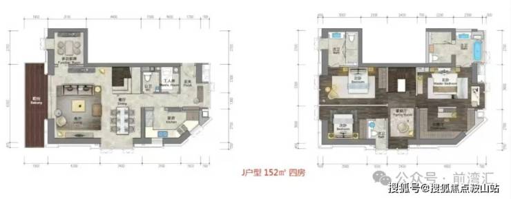 约152㎡ 三套房两厅四卫+书房+工人房