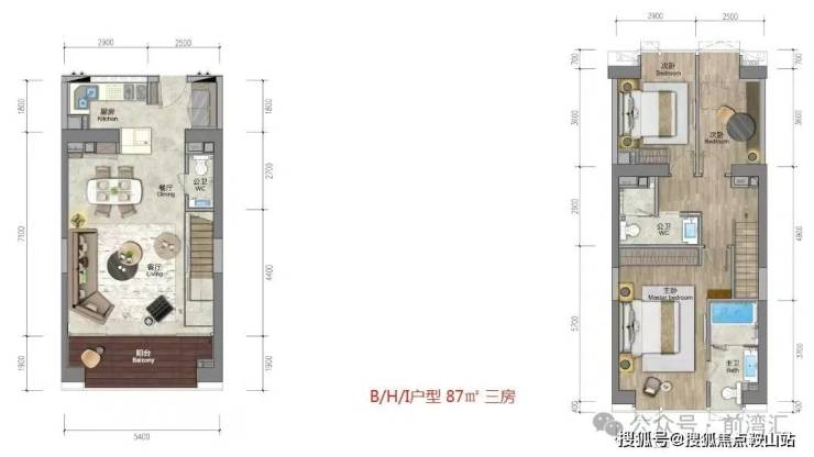 约87—88㎡ 两房/三房两厅三卫