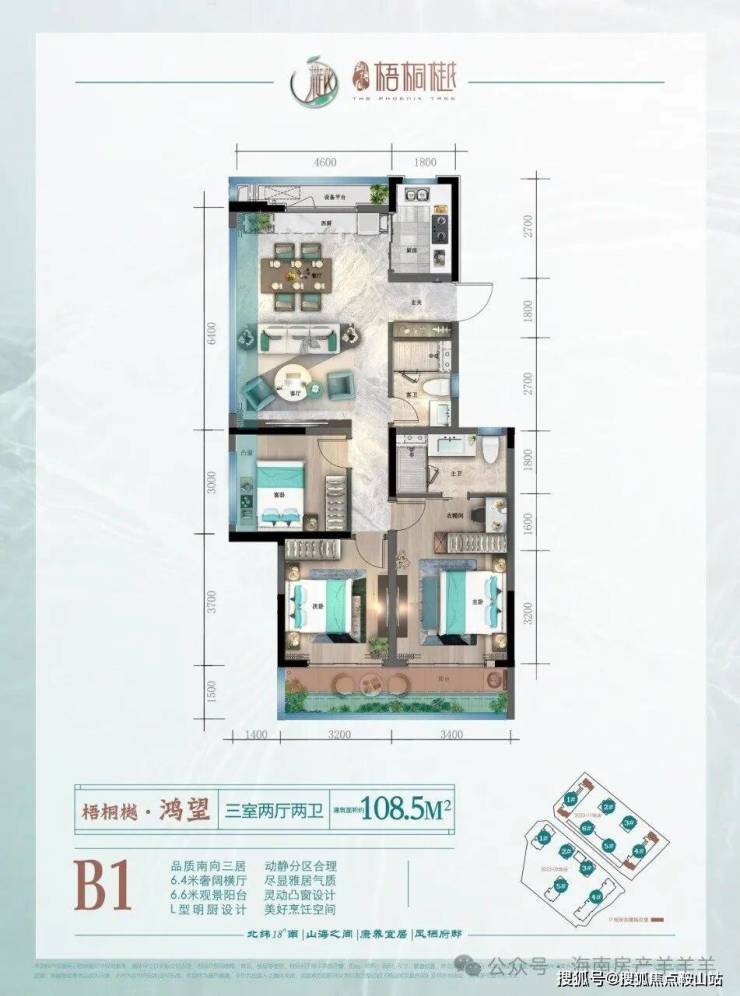 建面约108-133m三房/四房,慢享山海之间宜居康养度假生活,室内空间由HPID堂朝天意高端设计。