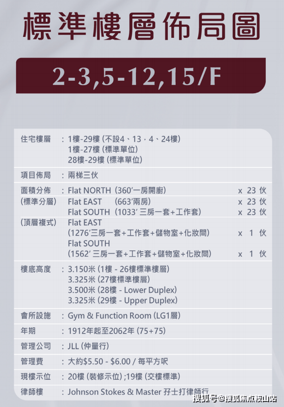 28楼及29楼复式单位 三房: 1,276及1,562)