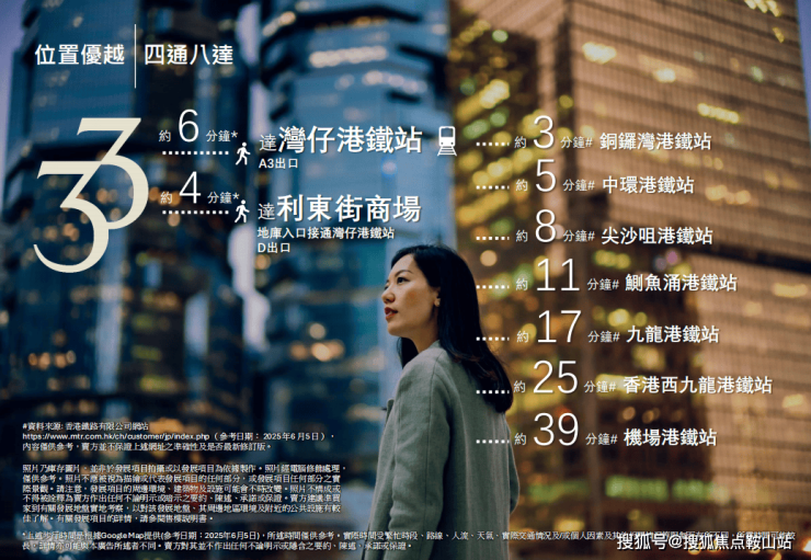 驾车3分钟到铜锣湾时代广场,9分钟到中环IFC,12分钟到太古坊,13分钟到高铁香港站西九龙段,16分钟到九龙站ICC,33分钟到香港国际机场。