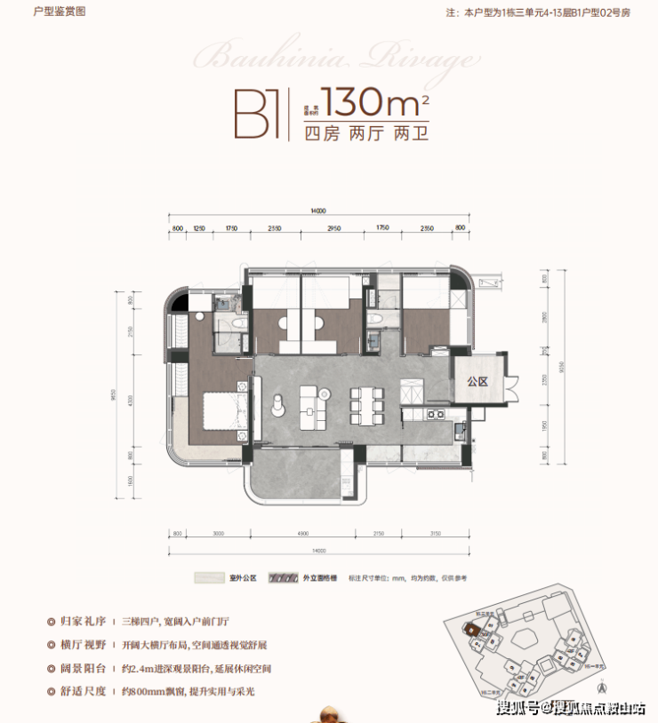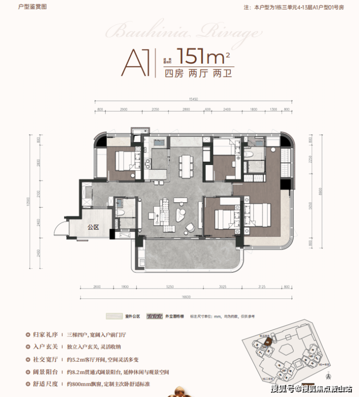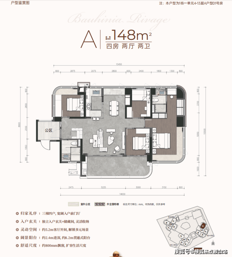 三梯四户,独立入户玄关+储藏间,灵活收纳,约2.4m进深,约8.2m贯通式阳台。