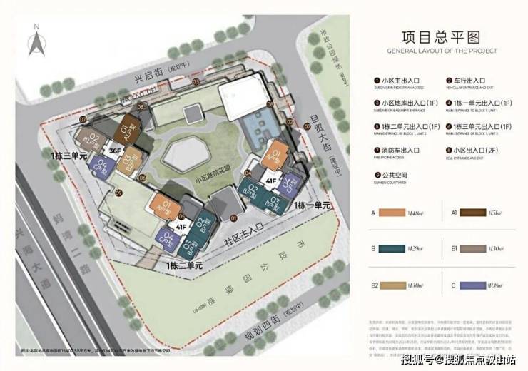 总层高:1栋1/2单元41层,3单元36层