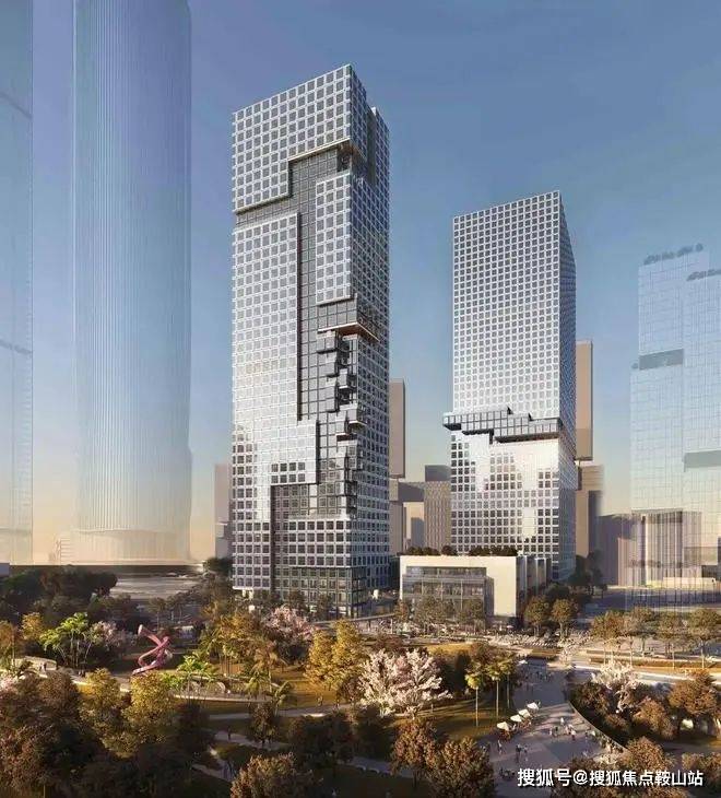 SLD、CCD、HHD三大设计机构联袂执笔,建筑形态引入中国传统高山流水意境,外立面创新采用数码像素化表达,焕新城市天际。