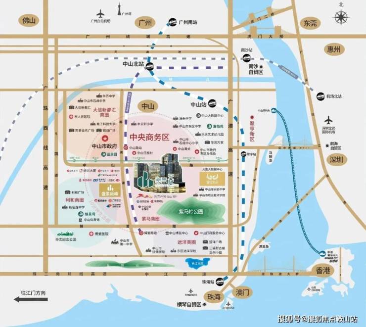 項目本身擁有30萬㎡的商業體量,處於城心的位置,位於中山最繁華的紫馬商圈(中山金融 CBD),形成中山首條創新創業金融街。國內外知名銀行證劵金融企業集聚中山"華爾街"——中山首條創新創業金融街。