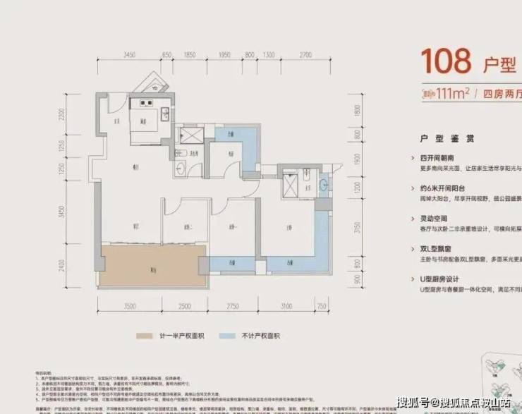 竖厅设计动静分区,约3.5米开间主卧,带独立卫生间,书房L型飘窗,多面采光更通透,U型厨房布局,流线顺畅。
