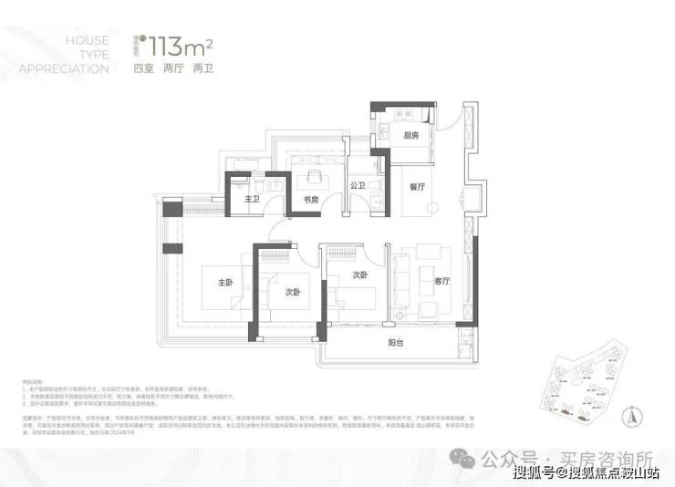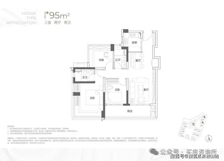 115㎡户型使用率约80.8%,抛去墙体+飘窗+全部阳台使用率达到85.28%