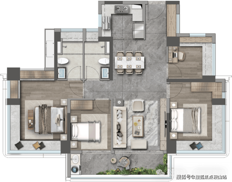 约6.1米阳台,三卧室270°飘窗,坐拥巨幕景观