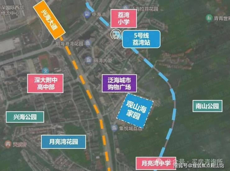 在区位上,项目毗邻大南山,属于南山中心区荔湾板块,靠近前海妈湾片区和蛇口片区;附近有妈湾在售的万科瑧湾悦价格在10.5万,以及即将入市新盘有妈湾的前海招商臻玺预计在10万左右,项目这两个项目观山海花园并不在妈湾核心位置,属于比较边缘地界了,后面入市大概率价格方便也会稍微比较低一些,项目相比于这两个小区优势在于景观背山面海以及大社区花园