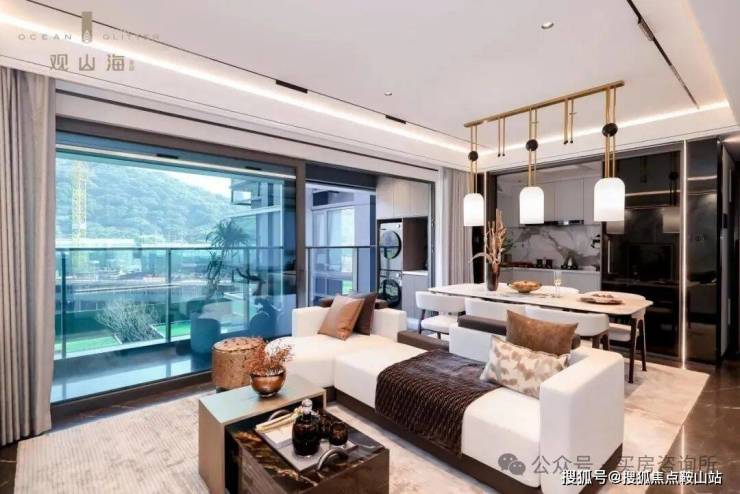 越往里步入,越能感受到归家即入山境的奇妙感受。目之所及的大南山盛景、流淌雅致之美的轻奢水院、绿意盎然的景观花园、静谧舒适的会客公区,都在移步异景间,传达着都市山居美学。
