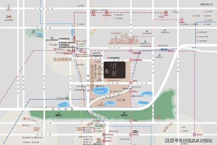 ①双枢纽(深圳北站+五和站),1小时无缝对接大湾区;五和站城际枢纽,5/10号线及规划中的深大、深惠、深广中轴城际。